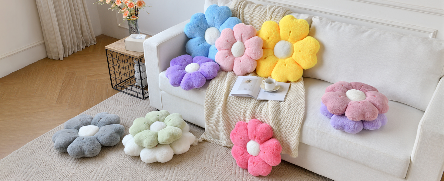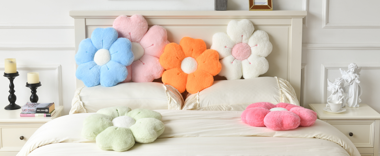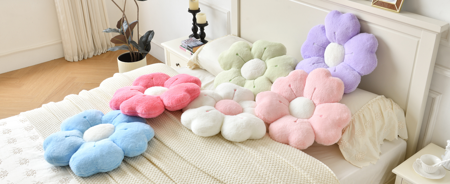 Flower Pillow, Flower Shaped Decorative Pillow, Suitable for Bed Sofa, Cute Daisy Pillow Dormitory Decorative Floor Cushion (White, 15 Inch)