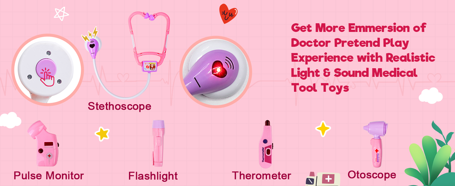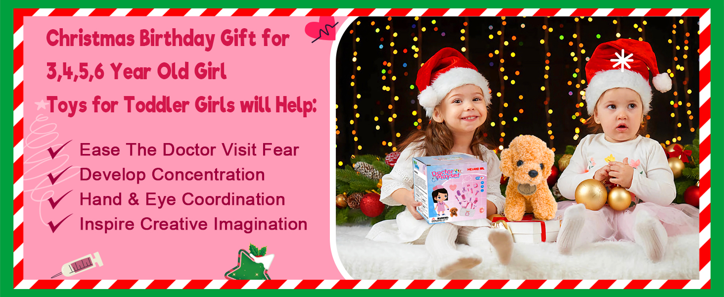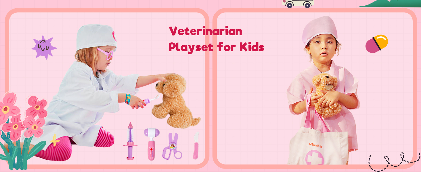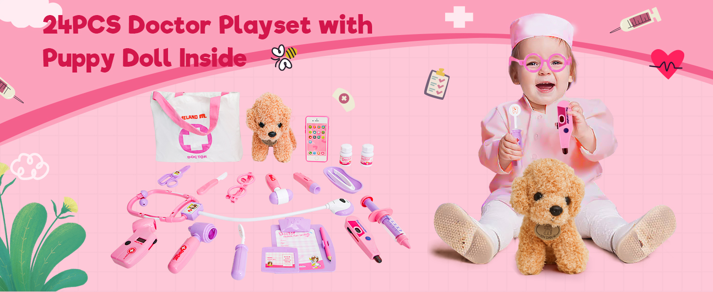 Toy Doctor Set for Girls - Pretend Play Doctor Set with Dog Toy, Carrying Bag, Stethoscope Toy and Dress Up Costume - Doctor Play Gift for Toddlers 3 4 5 6 Years Old for Role Play
